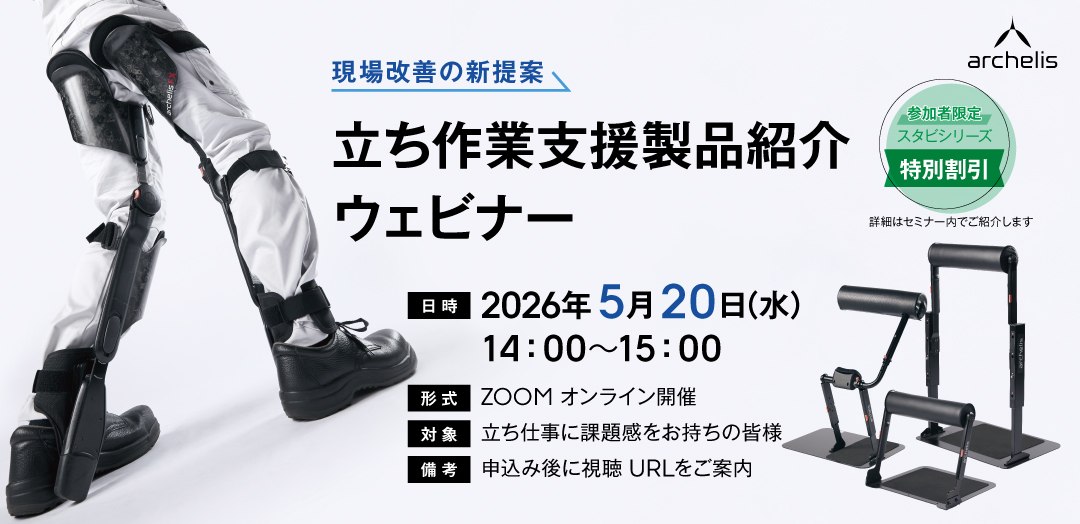 このたび、5月20日(水)に「JMC×アルケリス 共催 立ち作業支援製品紹介ウェビナー」をオンライン開催いたします。
